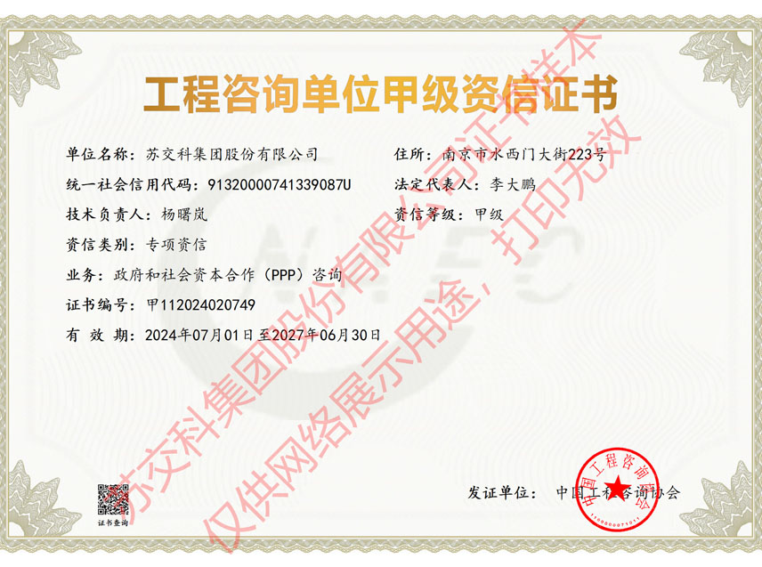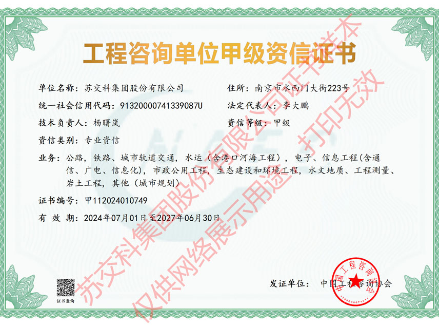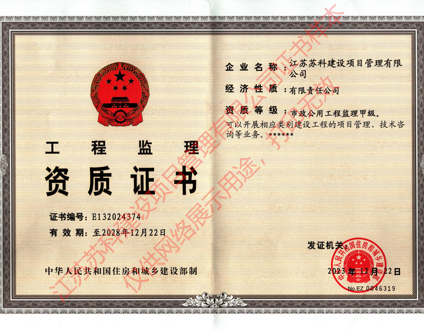 蘇科建設(shè)市政公用工程監(jiān)理甲級