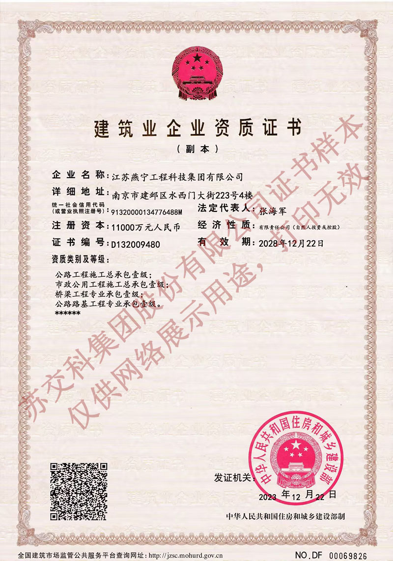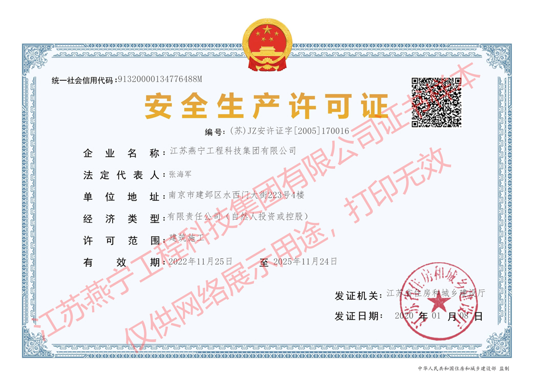 燕寧工科施工總承包壹級資質(zhì)