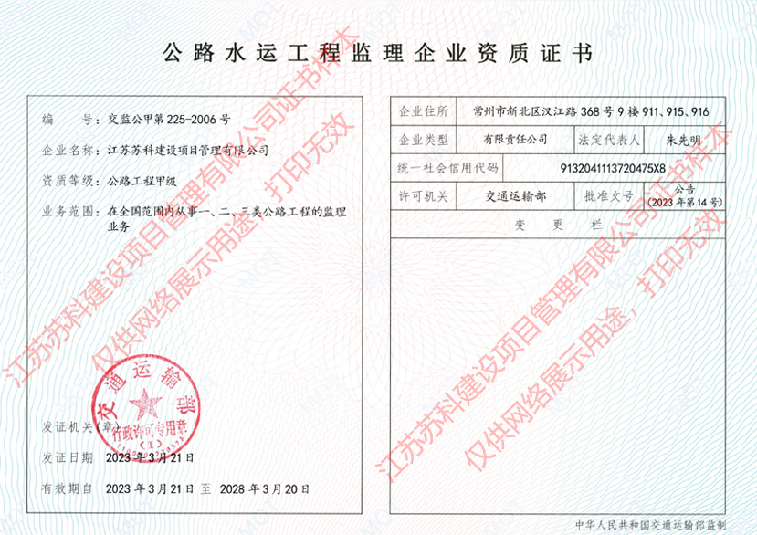 蘇科建設(shè)公路工程監(jiān)理甲級