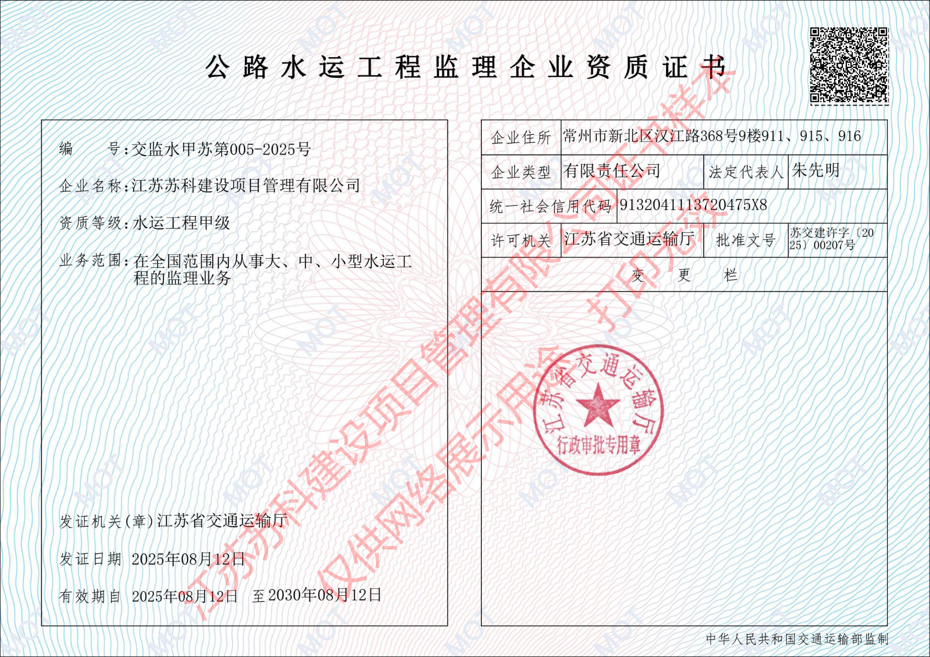 蘇科建設(shè)工程監(jiān)理水運工程資質(zhì)甲級